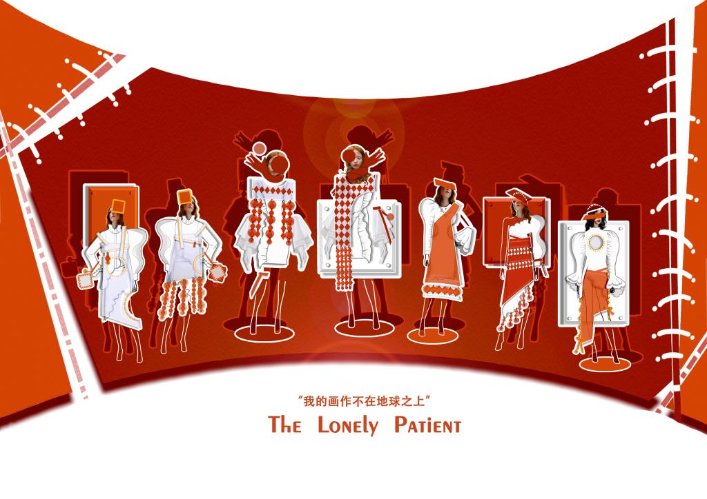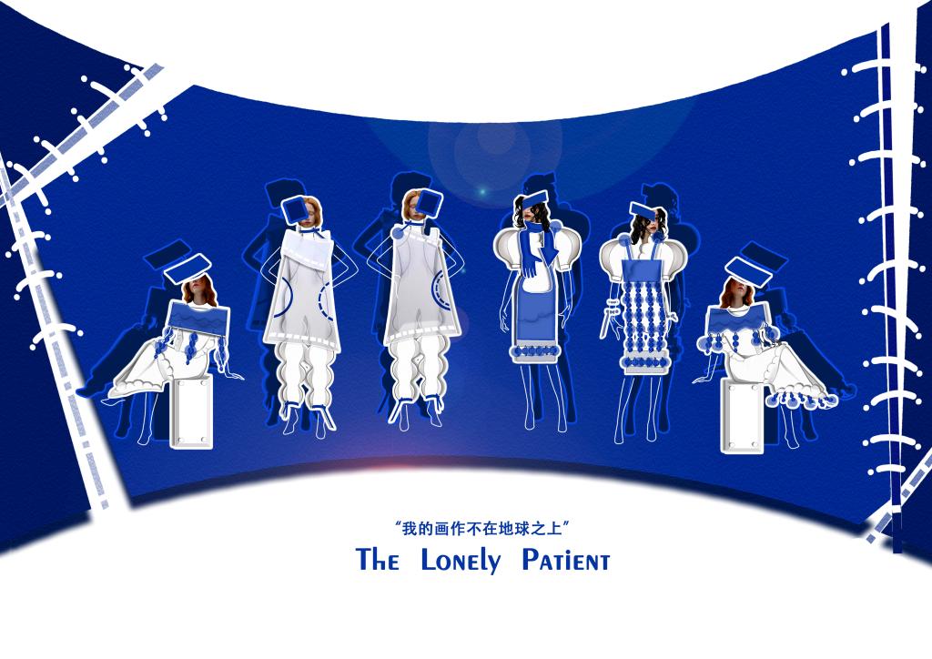 这套设计的最初灵感来源于我们两位创作者的同时患上重感冒时对于人类自身脆弱和空洞孤独的共情,所以想设计出一套能够表达当下独居年轻人心里的孤独的破碎感和独立感的服装。同时也致敬国外艺术家马列维奇的抽象艺术,我们对抽象进行自己的思考结果,即为线条孤独,在线条感给予的孤独空间里用大量的色块填充,将现实抽离,纯粹的游离在线条和几何色块之中。