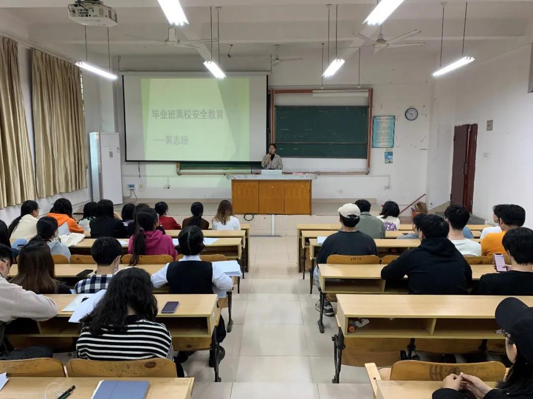其次,黄志纷老师围绕人身安全、财产安全、交通安全、个人疫情防控等方面进行了教育,提醒毕业生在毕业季要注意人身、财产等一系列安全问题。此外,当前疫情防控不能松懈,同学们要积极配合防疫工作,假期外出时佩戴口罩,做好个人防护。