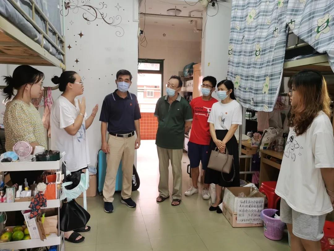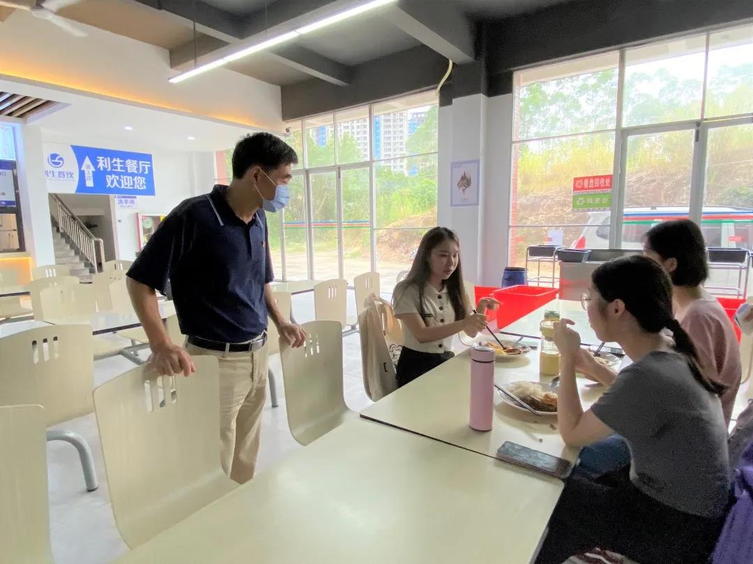 10月14日上午,董事长游小波带领公司党政办主任张燕斌、后勤管理处处长周朱灿、PA视讯官网副经理徐俊东和公司党总支书记陈碰仔深入美林校区2021级广告学(专升本)专业员工宿舍和食堂,关心同学们学习及生活状况,给新入学的新生带去了家一样温暖。