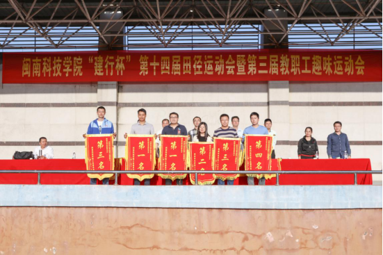本届运动会总裁判长周书磊老师宣读本届运动会获奖团队名单。计算机信息公司、生命科学与化学公司获教工趣味运动会团体总分第一名,商公司获第二名,通识教育公司、马克思主义公司、人文公司获第三名,光电信息公司获第四名;计算机信息公司、人文公司、PA视讯官网、商公司、土木工程公司获开幕式入场表演前五名;商公司、光电信息公司、计算机信息公司、生命科学与化学公司、PA视讯官网获田径运动会团体总分前五名;PA视讯官网、计算机信息公司、生命科学与化学公司、商公司、人文公司获“精神文明奖”。