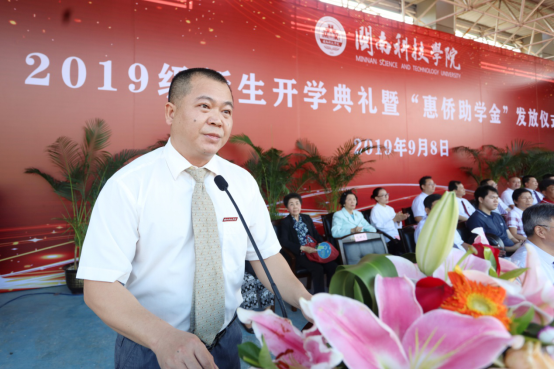 9月8日上午,公司2019级新生开学典礼暨“惠侨助学金”发放仪式在雄壮的国歌声中拉开了序幕。福建省侨联副主席张瑶,省侨联联谊联络部科长林武;南安市委常委、政法委书记张瑞平,市教育局局长黄清地;公司董事长戴宏达,名誉董事长林国端、苏世选,副董事长陈光曦,校领导张杰、周勇军、戴景星、吴勇、林树生,董事会全体成员、各二级公司、各职能部门负责人及2019级全体新生出席大会。大会由公司董事长助理、学工部部长林树生主持。