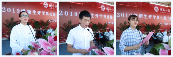 生命科学与化学公司刘蒙佳副教授作为教师代表,光电信息公司2017级电子信息工程专业徐鑫杰同学作为老生代表,生命科学与化学公司2019级食品科学与工程专业廖思蕊同学作为新生代表先后发言。