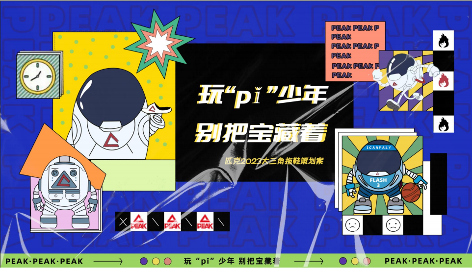 设计说明:借助" pi "的谐音,采用口号式的口吻,既是对匹克产品的呼应,也是对品牌自适应科技理念的共鸣,巧妙展现品牌痞性与不羁的产品态度,活动旨在通过对刻板的舍去和品质的加持而达到自适应的人生平衡状态。在这里,你将会参与到一场失踪案件的调查、喝到反向毒鸡汤、领略舌战群儒的启发、再来一场沉浸式场景体验,挖掘自我的无限可能。青春千面,面面发力,而匹克想告诉你的是:青春千面,面面皆宜。