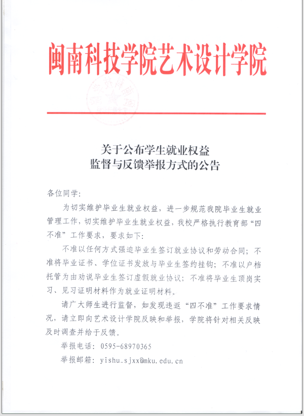 关于公布员工就业权益监督与反馈举报方式的公告