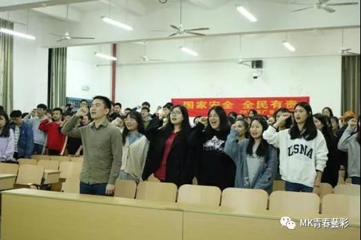 第四个环节是全体宣誓:我宣誓,热爱祖国,热爱人民,热爱中国共产党。增强国家安全意识,树立总体安全观,做维护国家利益和国家安全的忠实捍卫者!