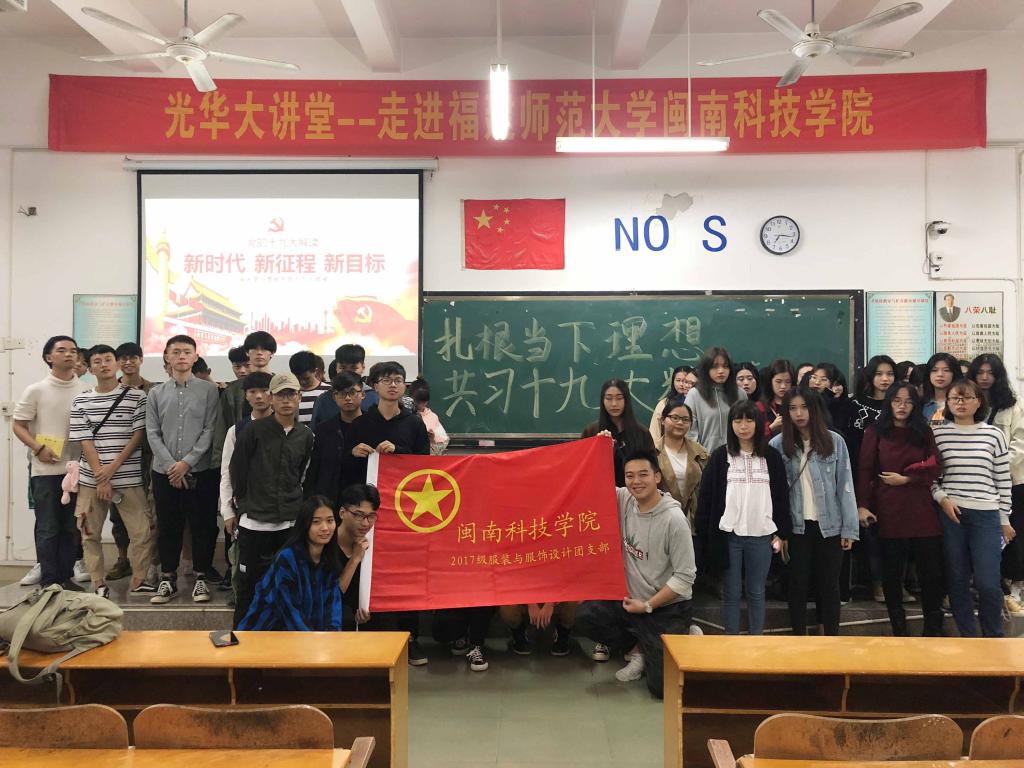 2018年12月2日为了为了贯彻落实十九大精神。通过学讲结合、以讲促学,引导老员工将十九大精神内化于心,外化于行,真正实现扎根当下理想,共习十九大精髓。17级服装与服饰设计专业在菲华楼C201教室进行了‘扎根当下理想 共习十九大精髓’团立项活动。