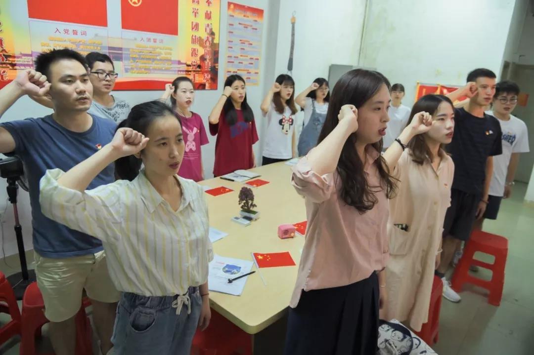 最后全体党员面向党旗,庄严宣誓:将承诺放在心上,将责任扛在肩上,积极践行承诺。