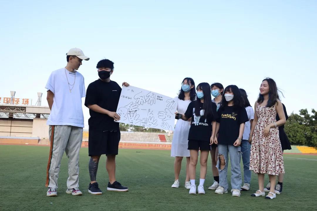 夕阳斜照在田径场上,每个人脸上洋溢着青春的笑容,无人机在空中低飞,记录下少年们一帧帧的美好。少年们玩闹着,闲聊着,大家的欢声笑语此起彼伏。最后,在夕阳的见证下,团委成员合影留念,将初见时的美好定格在相片中。